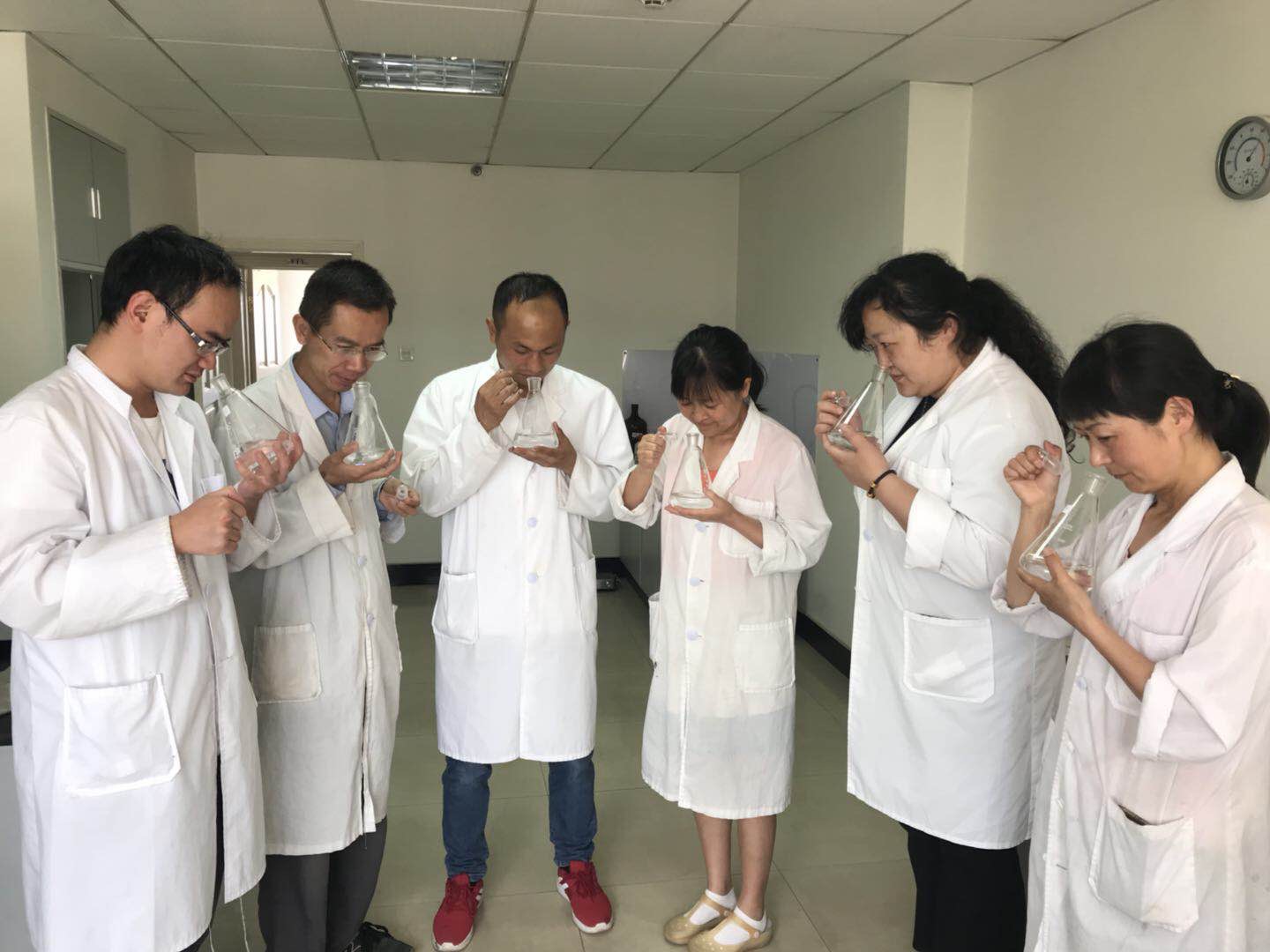 在為期三個(gè)月的嗅味課題研究中,正值水質(zhì)監(jiān)測(cè)中心每年最繁忙、檢測(cè)任務(wù)最多的時(shí)期,有威立雅全球?qū)嶒?yàn)比對(duì)、大量的年度檢測(cè)項(xiàng)目必須完成。嗅味測(cè)試小組成員克服困難,一邊完成自已的本職檢測(cè)工作,一邊開展嗅味科研工作。特別在第三階段的敏感性調(diào)查中,得到了整個(gè)水質(zhì)監(jiān)測(cè)中心所有同事,包括退休員工的大力支持。